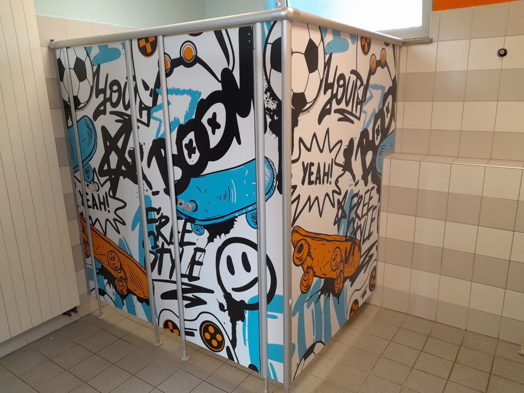 Die Aktion ist Teil eines langfristig angelegten Projekts, innerhalb dessen nachhaltig dafür gesorgt werden soll, dass eine schöne und gepflegte Toilettenanlage allen Schülerinnen und Schülern zur Verfügung steht. Das Projekt erfolgte in enger Abstimmung mit der Technischen Gebäudewirtschaft (TGW) der Stadt Siegen, die das Projekt tatkräftig unterstützte - unter anderem mit neuen, großen Spiegeln, Instandsetzung der Sanitärtrennwänden, neuen WC-Deckeln und Urinalen sowie einer Sonderreinigung der Bodenbeläge. So konnten nicht nur kreative, sondern auch bauliche Verbesserungen realisiert werden. Hellere Farben und verbesserte hygienische Bedingungen sorgen nun für ein deutlich angenehmeres Umfeld für die Schülerinnen und Schüler, welche zuvor die Toiletten reinigten und später dekorierten. Eltern und LehrerInnen strichen die Räume.