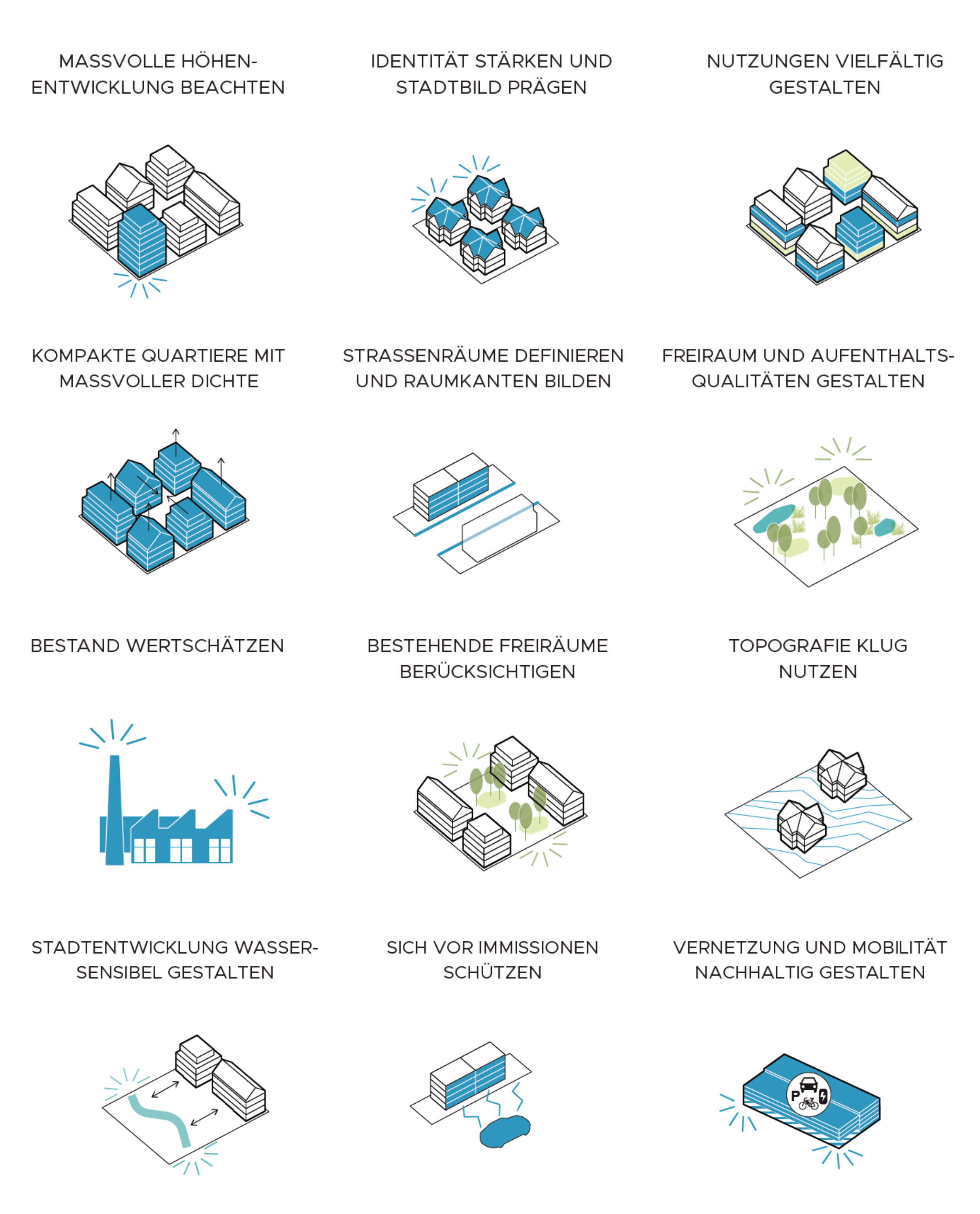 Der Masterplan legt Anforderungen fest, die bei der Umsetzung von Bauvorhaben beachtet werden sollen. Diese Regeln helfen, eine Innenentwicklung mit hohem Qualitätsanspruch durchzuführen.